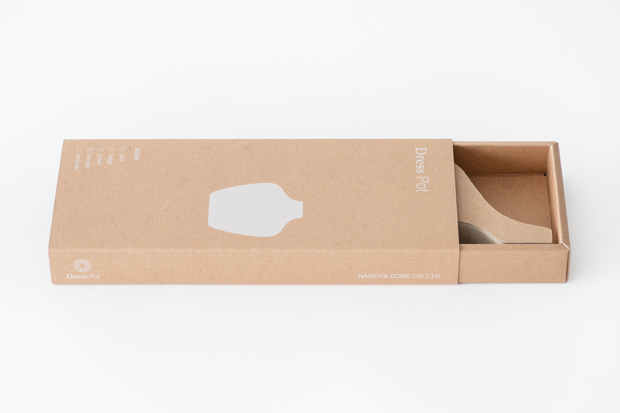 「たたむと薄くコンパクトになるのはハニカムペーパーの特徴なので、その良さを伝えることにはこだわりました。収納しやすいのはもちろん、プレゼントや郵送にも適した仕様です」と語るのは加藤淳一さん。ドレスポットとチェンジポットの開発製造元・ナゴヤ芯材工業株式会社(愛知県小牧市)の常務である。